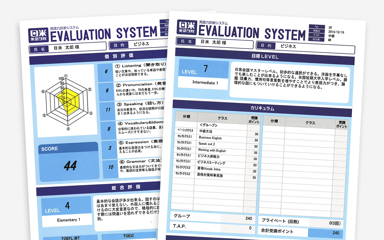 また、レベル別/技能別テキストは45年の歴史ある日米英語学院のオリジナルテキストを利用するので、ここでしか学べない学習を受けていただくことが可能です。